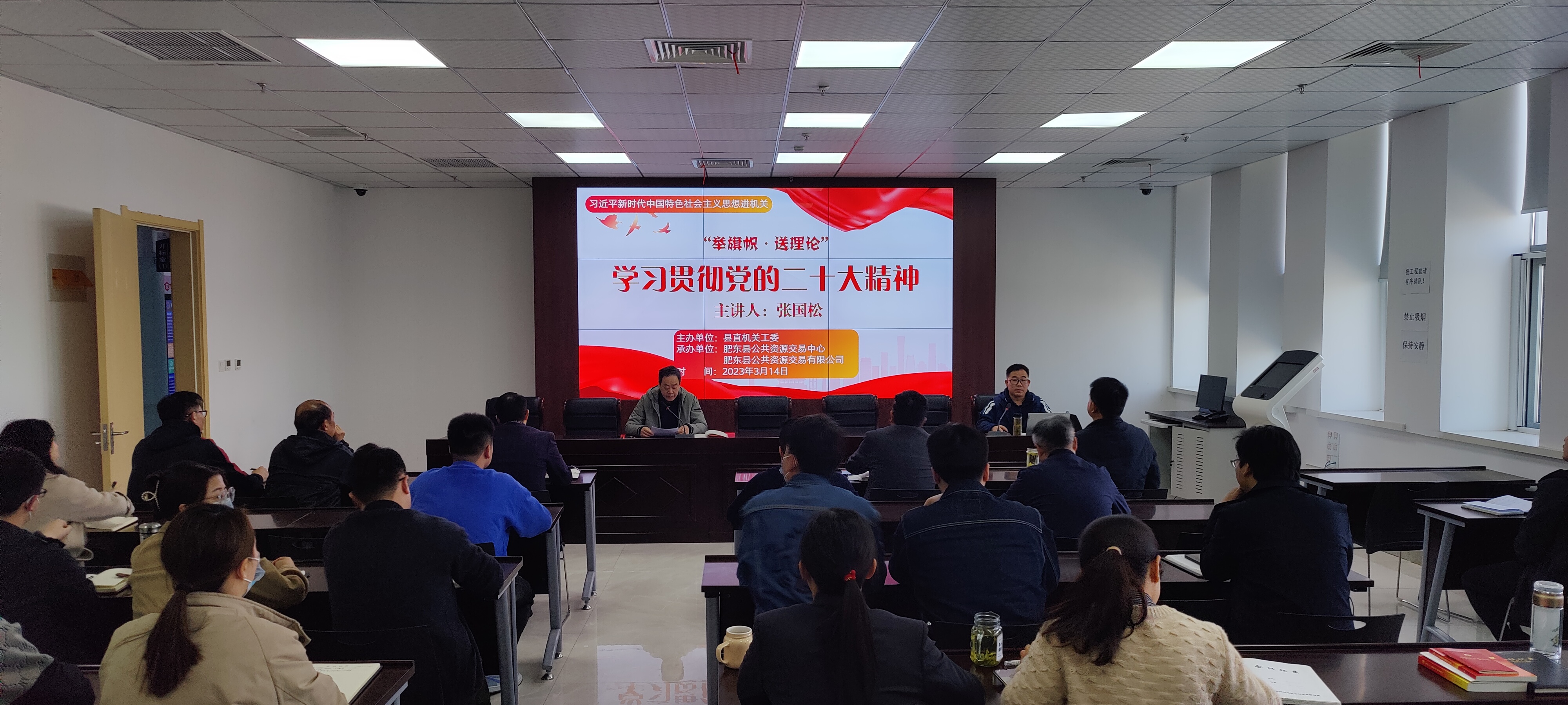 為進一步把黨的二十大精神學習好、宣傳好、貫徹好,根據(jù)縣直機關工委統(tǒng)一部署,3月14日下午,縣公共資源交易有限公司邀請肥東縣委黨史和地方志研究室主任張國松同志為公司全體干部職工作“舉旗幟·送理論”學習貫徹黨的二十大精神專題宣講。
